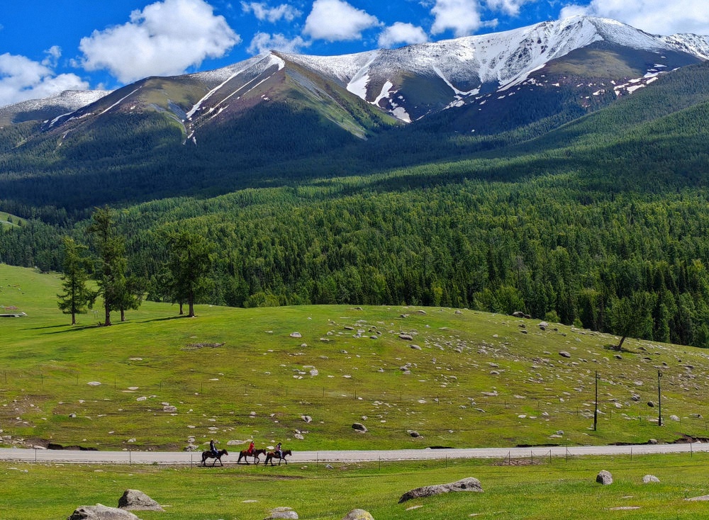 2024年6月4日,游客在新疆阿勒泰地区哈巴河县骑马游玩。电视剧《我的阿勒泰》播出后,新疆阿勒泰地区迎来客流高峰,“张凤侠的小卖部”“巴太树”“彩虹布拉克”等剧中地点成为热门旅游打卡地。这场“边城”与“热剧”双向奔赴的文旅盛宴,为当地经济发展带来新的增长点。2024年5月,当地接待游客415.03万人次,同比增长60.81%;实现旅游收入36.53亿元,同比增长88.25%。